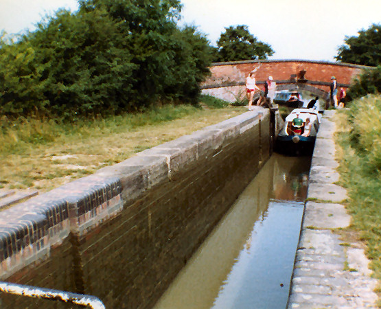 12.00 Arrived Somerton Deep Lock. This has a fall of 12'. Even standing on the cabin top Howard who is 6' 2" could not see out.
